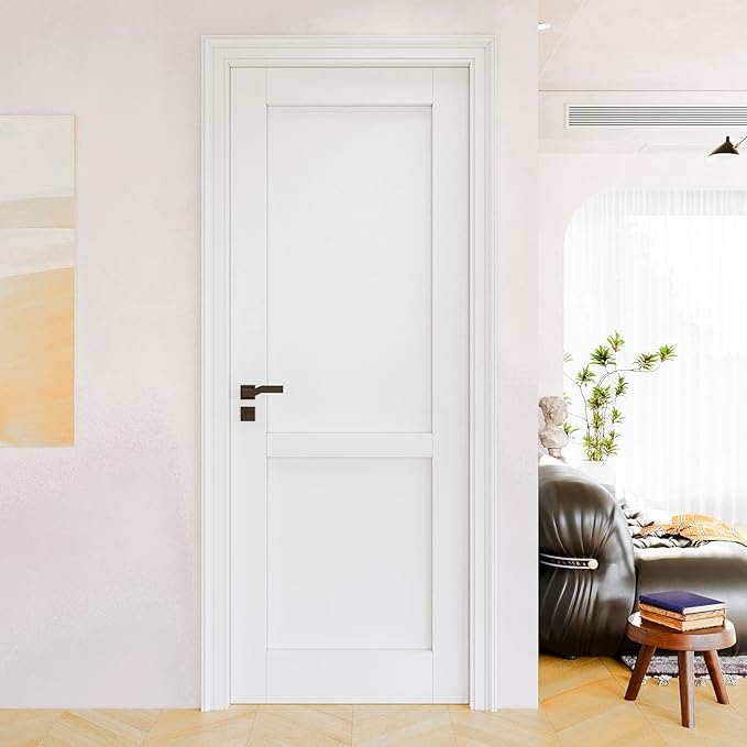 30″x80″ CARB P2 Pre-Built Solid Core & Pre-Finished & Paintable Wood Doors, Interior Door for Bedroom, 2-Panel Swing Shaker w/o Frame, Wood White Room Door, Barn Doors