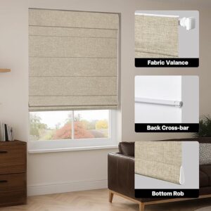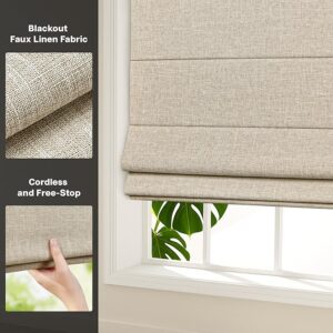 44 in W Blackout Beige Roman Shade Lightweight Fabric Blinds for Indoor Windows